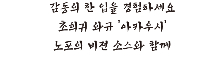 특히 아카우시와의 조화는 탁월하여, 섬세한 살코기의 맛을 한층 더 끌어올려 한 입 한 입이 풍부한 맛으로 가득합니다.